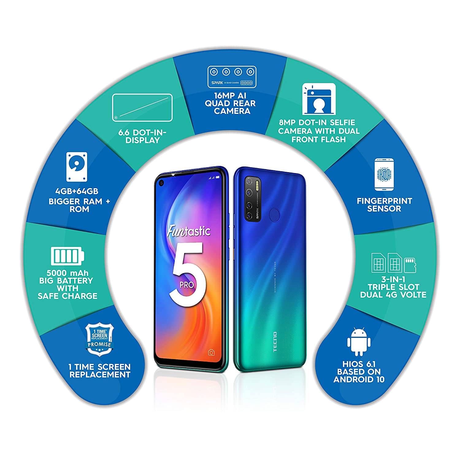 Le Tecno Spark 5 Pro exécute HiOS, est basé sur Android 10 et contient 64 Go de stockage intégré. Le Tecno Spark 5 Pro mesure 164,70 x 76,30 x 8,75 mm (hauteur x largeur x épaisseur). Il a été lancé dans les couleurs Ice Jadéite, Cloud White, Spark Orange et Seabed Blue.