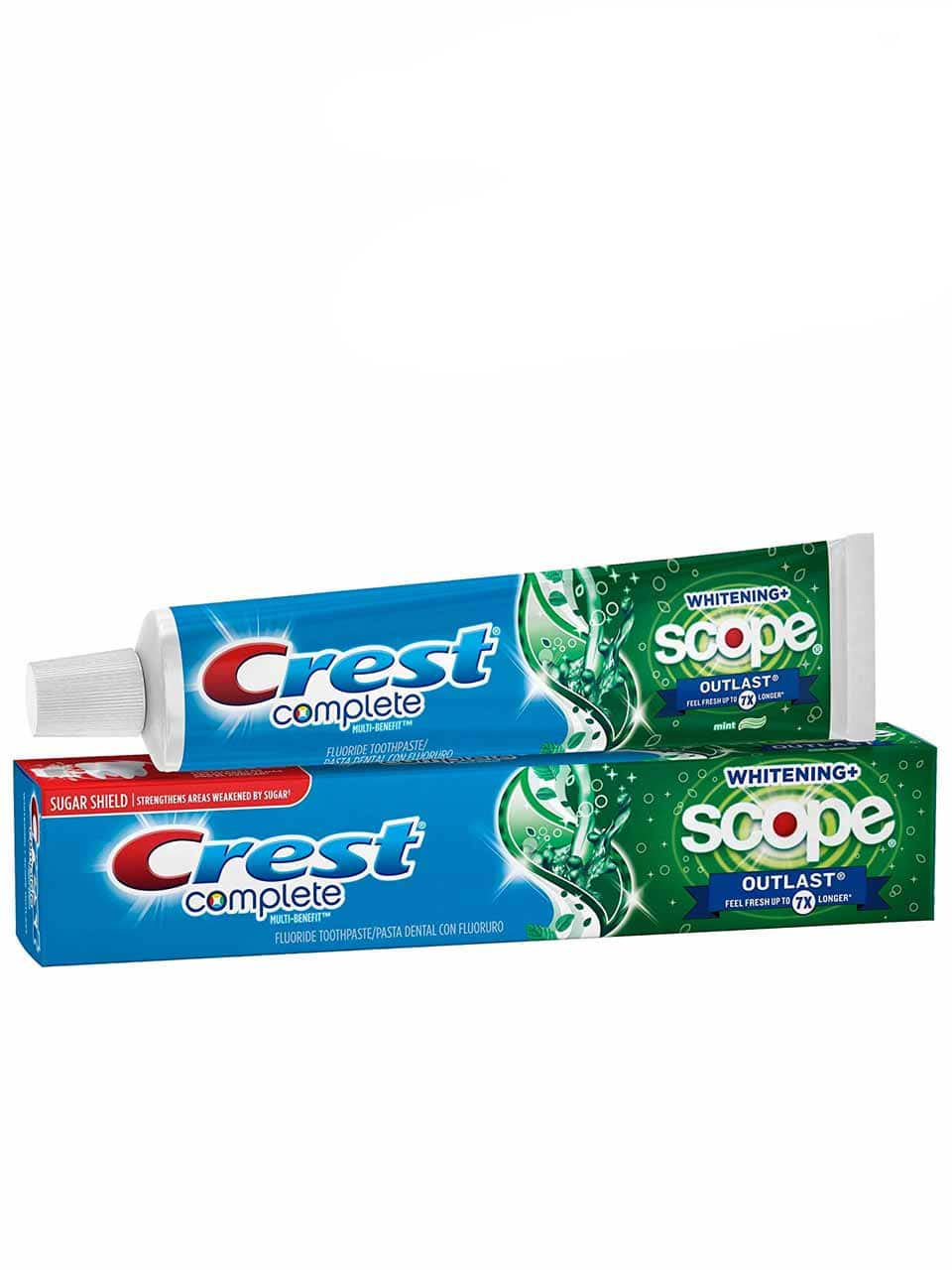 Portée complète de blanchiment Crest contient du fluorure pour aider les dents, les gencives en bonne santé.