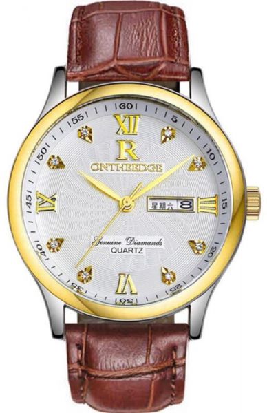 Montre R Ontheedge 1853 MODE_0017 - Forme : Ronde - Type de Mouvement : Quartz - Type d'affichage : Analogique - Type de bracelet : Cuir - Couleur du bracelet : Marron - Couleur du cadran : Dorée - Avec calendrier : Oui - Résistante à l’eau : Oui (30 m) 25.000 F CFA Quantité Laisser ce champ vide