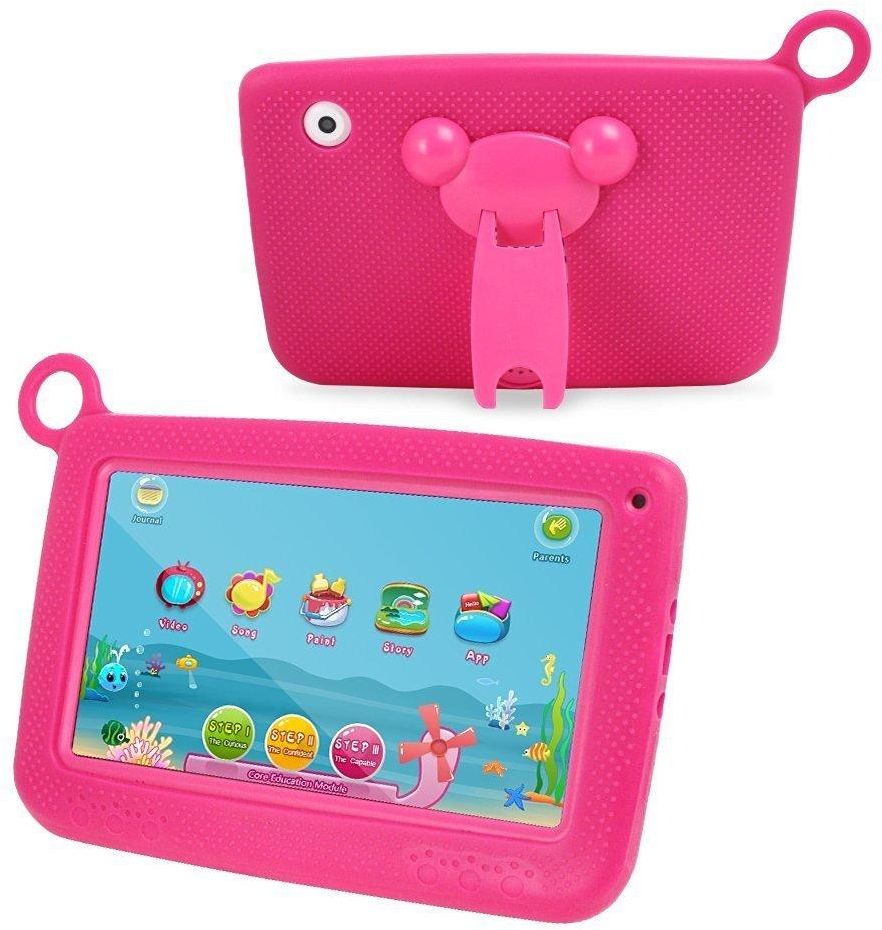 Quad Core Processor 1.3GHZ, système d’exploitation Google Android 4.4 KitKat, offre une grande vitesse et une réactivité optimale pour exécuter des applications éducatives et jouer à des jeux, un écran LCD multi-touch de 7 "", une résolution de 1024 par 600 et 512 Mo de RAM, Flash 8 Go, extensible jusqu'à 32 Go avec carte Micro SD pour plus d'espace; avec deux caméras, support wifi; pré-installé avec youtube, magasin de jeu, etc.